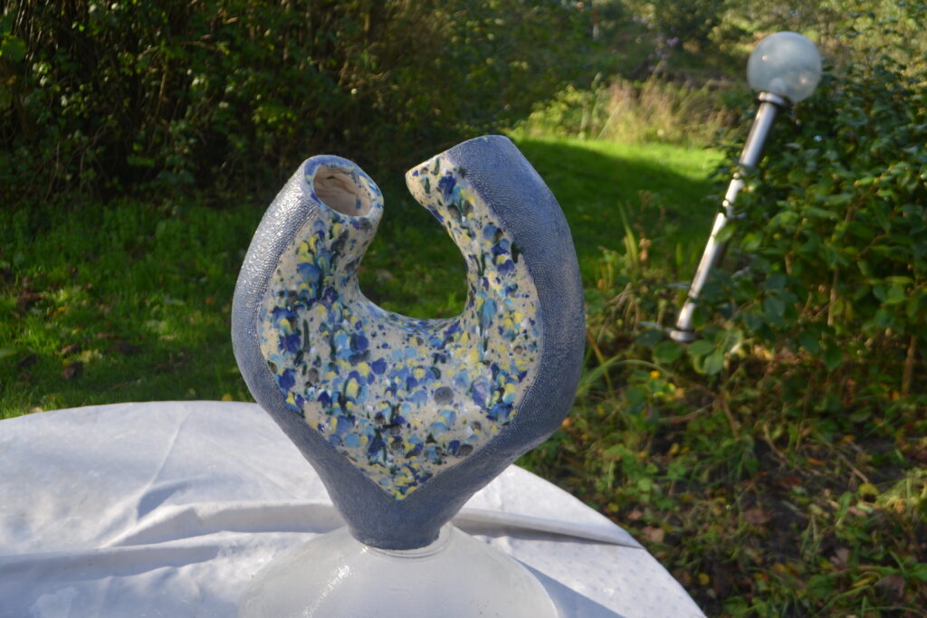 Ook voor de vazen en kandelaars laat ik me inspireren door de natuur. Of wel in de vorm, of in het glazuur. Zo zijn er vazen in de vorm van een druppel, vazen bedekt met Lava-glazuur of geglazuurd met de schildering van een landschap. ook de kandelaars hebben een organische en esthetische vorm