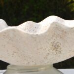 De bladschalen ontstaan uit echte bladeren. De nerven en structuren blijven zichtbaar in de klei, als een afdruk van de natuur zelf. Door het glazuur worden ze geaccentueerd. Ze kunnen als decoratief object of als gebruiksschaal dienen.